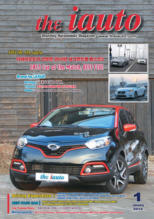 26 Hot!! Issue 현대차 포인트 지급 확대, 현금처럼 사용 가능 블루멤버스 전면 개편...혜택 높인 고객 만족도 선보인다 27 the iauto Special BEST 5 !! 2013 Car of the Match, BEST FIVE 더아이오토가 선정한 2013년 세그먼트별 베스트5 유저들이 목말라하는 진정한 자동차는 있는가? 2.0리터 이하 디젤 / 중형 및 준대형 세단 / 대형 세단 소형 SUV / 중형 SUV / 대형 SUV / RV 2014 시즌 기대주 38 Driving Experience 보일 듯 말 듯한 매력적인 스포츠 쿠페 BMW NEW 420d LUXURY LINE [BMW 뉴 420d 럭셔리 라인] 40 Driving Experience 컴팩트 한 사이즈 속에 숨겨진 다양성과 즐거움 르노삼성 QM3 1.5dci [Renault Samsung QM3 1.5dci] 42 Driving Experience SUV, 그 이상의 즐거움을 느끼기에 충분한 모델 AUDI SQ5 3.0 TDI QUATTRO [아우디 SQ5 3.0TDI 콰트로]
