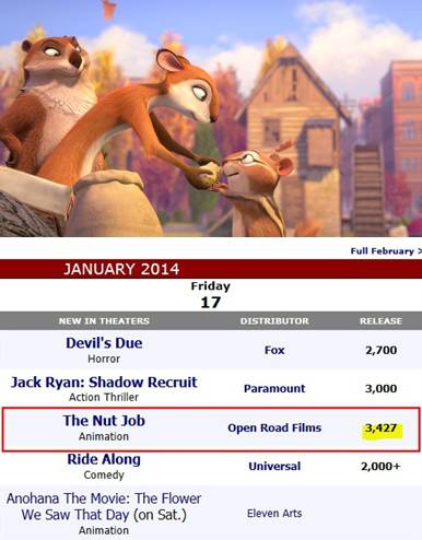 15일 배급사 싸이더스 픽쳐스에 따르면 '넛잡: 땅콩도둑들'은 17일 미국 개봉을 앞두고 무려 3427개관에서 현지 관객들을 만날 채비를 마쳤다.