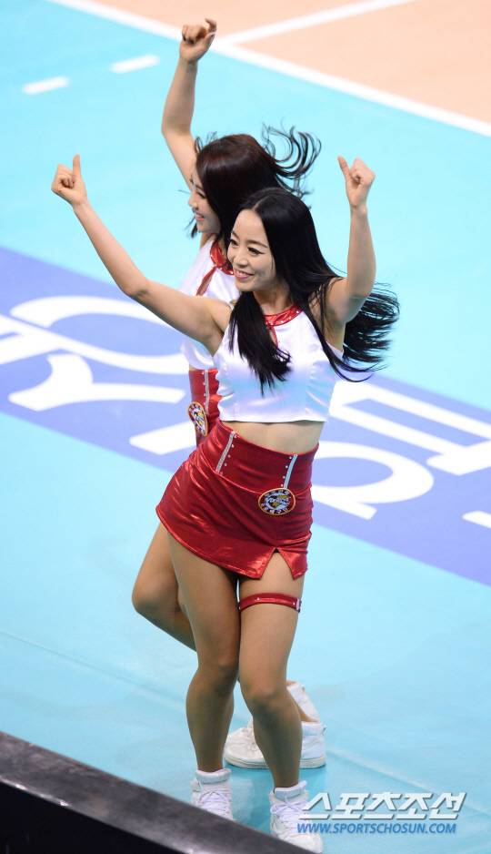 2013-2014 프로배구 V리그 한국전력과 대한항공의 경기가 15일 수원실내체육관에서 열렸다. 한국전력 치어리더들이 신나는 댄스로 응원분위기를 돋우고 있다.