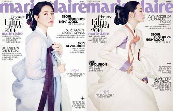 이영애는 최근 패션매거진 마리끌레르 2월호 표지 촬영에서 한복을 입고 임했다. 마리끌레르 표지에 한복이 등장한 것은 이번이 처음.
