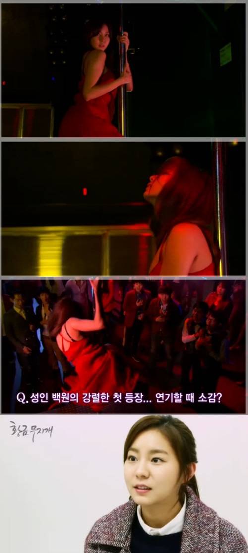 유이는 "작가님께서 날 찾아보다가 '첫사랑' 무대를 보셨다더라. 봉춤을 보셨고 폴에 관심을 갖다가 백원이가 어떻게 강렬하게 등장할까 생각하시고 넣었다고 하셨다. 난 솔직히 걱정됐다. 내가 생각한 백원이와 첫장면이 매치가 안돼서 고민했다"고 밝혔다.
