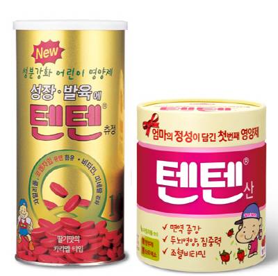 최근 '텐텐츄정'의 영양소를 그대로 살린 영유아 전용 '텐텐산'도 출시했다. '텐텐산'은 12개월 이상 영유아들에게 우유나 물에 타서 복용시킬 수 있으며 비타민A·B1·B2·C·D·E와 칼슘·마그네슘 등 17가지 성분의 비타민과 미네랄이 포함됐다. 특히 면역력을 증진시키는 아연과 두뇌발달에 도움을 주는 이노시톨 등이 포함돼 영유아 성장 발육에 효과적이다.