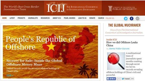 | ▲ 중국 지도부의 천문학적인 역외탈세 의혹을 폭로하는 국제탐사보도언론인협회(ICIJ) 홈페이지 갈무리. |