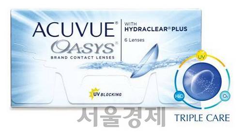 아큐브 오아시스는 실리콘 하이드로젤 소재에 하이드라클리어 플러스 기술이 적용돼 어떤 환경에도 촉촉하고 편안한 착용감을 제공한다.