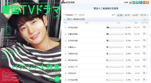 이를 대변하듯 그는 최근 중국 최대 포털사이트 시나닷컴이 실시한 '한류스타 인기투표'에서 1위를 차지했다. 시나닷컴이 실시한 '열두 별자리 한류 스타 중 가장 꽃미남인 스타는?'을 주제로 한 설문조사에서 양띠 자리로서 당당히 1위를 차지한 것.