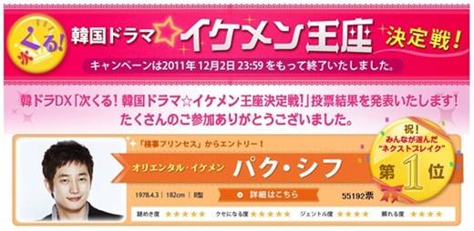 ◆ 박시후 日 '꽃미남 왕좌 결정전' 온라인 인기투표 1위