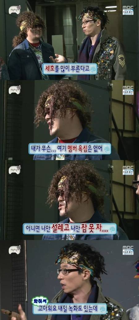 데프콘은 "내가 여기 멤버 욕심은 없다. 아무리 열심히 해도 멤버는 안 돼. 그런 생각 버려야한다. 아니면 나만 설레고 나만 잠 못잔다"고 말해 웃음을 자아냈다. (사진=MBC '무한도전' 캡처)
