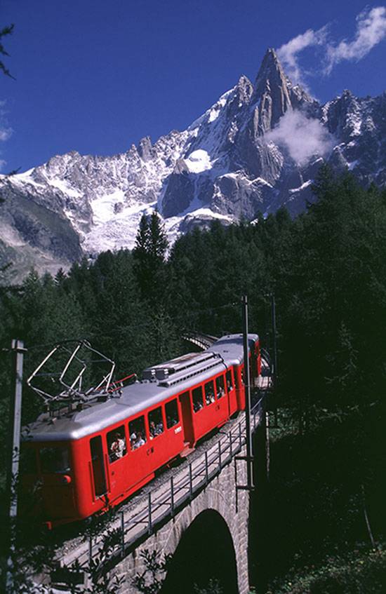 스위스의 마티니에서 출발하는 이 산악열차는, 샤라드 프론티어를 거쳐 샤모니 몽블랑에 이르게 되는데 유럽여행의 낭만을 더해준다.이 붉은 색 등산 열차는 길지 않지만, 프랑스와 스위스의 자연을 짧은 시간에 마음껏 만끽할 수 있는 매력적인 구간을 운행하고 있다.타고 있는 동안 쏟아져 내리는 폭포와 험난한 알프스가 눈앞에 계속 펼쳐진다. 또한 울창한 산림이 계속되는가 하면, 예쁘고 아담한 프랑스 전통 양식의 그림 같은 마을들이 번갈아 가며 등장하기도 한다. 이 산악열차를 타고 몽블랑 산을 넘어가는 것도 잊지 못할 특별한 경험이 될 것이다.