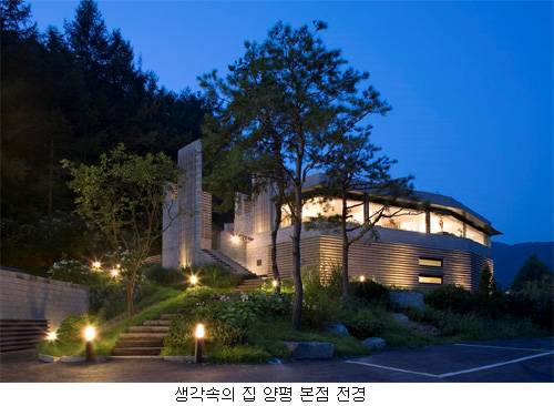 생각속의 집 펜션은 일반 펜션과는 이처럼 출발선 자체가 다르다. 품격 있고 차별화된 외관이라는 하드웨어에, '쉼'을 중심으로 한 콘텐츠를 담았다고 할까. 생각속의 집 펜션은 약 30년간 대형 건설사에서 현장소장 등으로 근무하며 눈썰미를 키워온 김 대표가 건축가 민규암씨에게 의뢰해 탄생한 작품이다. 펜션 이름도 민규암씨의 작품집 이름에서 따왔다. 일상의 바쁜 삶을 벗어나 아름다운 풍경과 여유로운 삶의 향취를 누릴 수 있는 쉼이 있는 공간이라는 의미를 담고 있다.