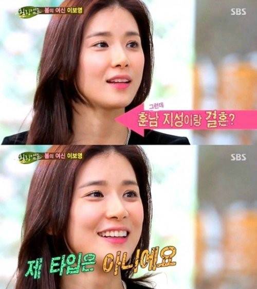 이날 성유리가 "결혼은 훈남인 지성과 했다"고 말하자 이보영은 "굳이 따지자면 지성은 내 타입이 아니다"라고 돌직구를 날려 웃음을 자아냈다.