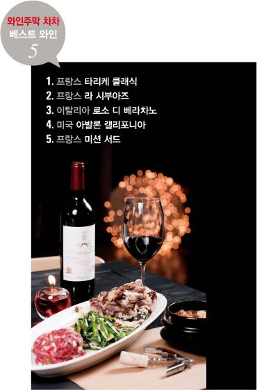 와인 & 요리_ 와인주막 차차는 한식과 와인의 마리아주를 철저하게 고집한다. 특히 깔끔하게 숯불에 구워 제공하는 차돌박이 메뉴는 이곳의 얼굴. 무화과 차돌박이 샐러드는 깔끔하면서도 상큼해 여성들이 특히 선호하는 메뉴다. '라 시부아즈'가 잘 어우러진다. 상큼한 레몬 즙을 짜 먹는 통영 생굴도 인기다. 몸에도 좋고 피부에도 좋은 굴은 '타리케 클래식'과 함께 곁들이자. 달짝지근하면서도 얼큰한 육수 맛이 일품인 차차 맑은 떡볶이는 '로소 디 베라차노', 차돌박이 구이와 육회, 부추가 한 접시에 담겨 나오는 차돌박이 육회 쌈은 '아발론 캘리포니아'와 함께 맛볼 것을 추천한다. '미션 서드'와 된장숙성 등심 깍두기의 궁합도 일품이다. 와인과 음식 모두 1만9000원부터 3만5000원 사이의 '착한 가격'대다.