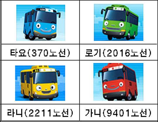 버스운송사업조합과 ㈜아이코닉스는 오는 26일 대중교통 이용의 날을 맞아 한 달간 애니메이션 '꼬마버스 타요'의 캐릭터인 타요·로기·라니·가니가 그려진 시내버스 4대를 운행한다.