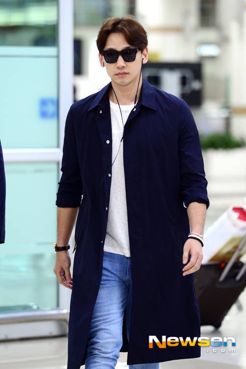 이날 비가 입국장을 나서고 있다.