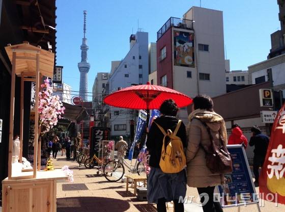 센소지 인근 상점가에서 바라본 도쿄 스카이트리/사진= 이지혜 기자 |