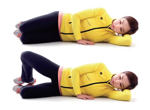 <mediamedia-type="image"><media-referencealign="center" data-location="#eyoree20140403160746_F_21_C_1" mime-type="image/jpeg"> 사이드 턴1) 팔베개를 해 옆으로 누운 다음 양무릎을 90°로 접어 포갠다. 2) 내쉬는 숨에 위쪽에 위치한 다리를 들어 올려 버텼다가 천천히 내려놓는다. 동작은 1회 시 5초간 유지하고 5회, 3세트 반복하면 된다.