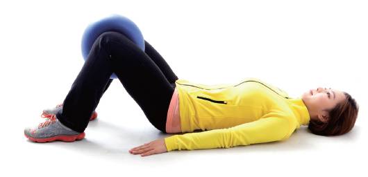 <mediamedia-type="image"><media-referencealign="center" data-location="#eyoree20140403160754_F_21_C_1" mime-type="image/jpeg"> 내전근 강화 동작1) 바른 자세로 누워 양무릎을 90°로 접어 지면에 세우고 양무릎사이에 볼을 둔다. 2) 내쉬는 숨에 무릎 안쪽으로 힘을 가해 볼을 누른다. 10초간 유지 후 천천히 제자리로 돌아간다. 동작은 10회, 3세트 반복한다.
