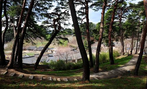 선교장 둘레길도 걸을 수 있는 만큼 걸어본다. 선교장 주변 야트막한 산을 에두르는 길인데, 길 주변의 아름드리 소나무가 아주 멋지다. 하늘 높은 줄 모르고 위로 쭉쭉 뻗은 자태가 꽃 못지않게 화려하다. 높이 23m에 수령이 520년 된 소나무도 있다. 이거 보면 한철 사는 꽃 본 것 보다 여운 오래간다.