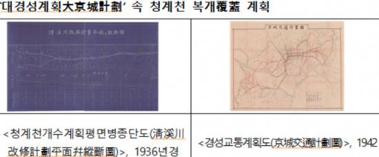 1930년대 후반, 청계천 전면 복개에 대한 구체적인 계획들이 발표되는데 '청계천개수계획평면병종단도 (淸溪川改修計劃平面幷縱斷圖)'와 경성교통계획도 (京城交通計劃圖)'가 이를 뒷받침한다.