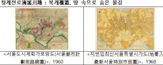 1927, 1933년에 제작된 '경성시가도(京城市街圖)'는 일제의 하수도 개수계획으로 복개돼 사라져가는 청계천 지천의 변화를 살펴 볼 수 있다.