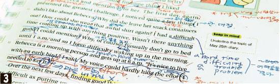 김군은 학교 사물함엔 교과서를 한 권도 넣어두지 않는다. 전과목 교과서를 집에 두고 시간표에 맞춰 아침마다 챙겨간다. 가방이 무겁지만 교과서로 예·복습 하는 습관 때문에 학교에 놓고 다니지 않는다. 김군은 "노트 정리를 따로 하지 않고, 중요한 내용은 전부 교과서에 정리한 다음 반복해 읽는다"고 얘기했다. 문제집을 풀다 이해가 안 되는 내용이 나올 때도 답안지보다 교과서를 먼저 펼친다. 김군은 "답안지에는 문제에 대한 설명만 간략하게 나오지만, 교과서엔 관련 단원의 전체적인 내용과 수업 시간에 선생님이 강조한 내용까지 한눈에 들어온다"고 설명했다. 답안지보다 교과서를 봐야 더 쉽게 이해가 간다는 얘기다.
