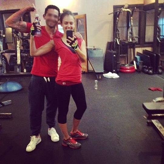 할리우드 배우 제시카알바는 4월29일 자신의 페이스북에 "오늘부터 트레이너 선생님과 체육관에서 옷 맞춰입기로 했음(That privatetrainer and I decided to be twins today in our gym fashions)"라는 글과 함께 사진 한 장을 게재했다.