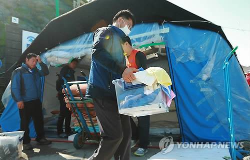 자원봉사자들은 이들 가족이 그동안 흘린 눈물로 흥건히 젖은 베개와 담요를 햇볕에 말리고 땅바닥의 냉기를 막아주던 깔개도 거둬냈다.