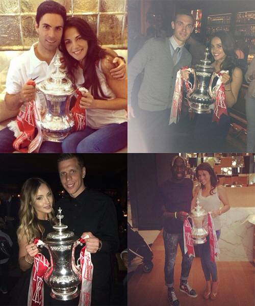 아스널 선수들이 남달리 빼어난 미모를 자랑하는 배우자들과 함께 우승컵 인증샷을 공개했다.