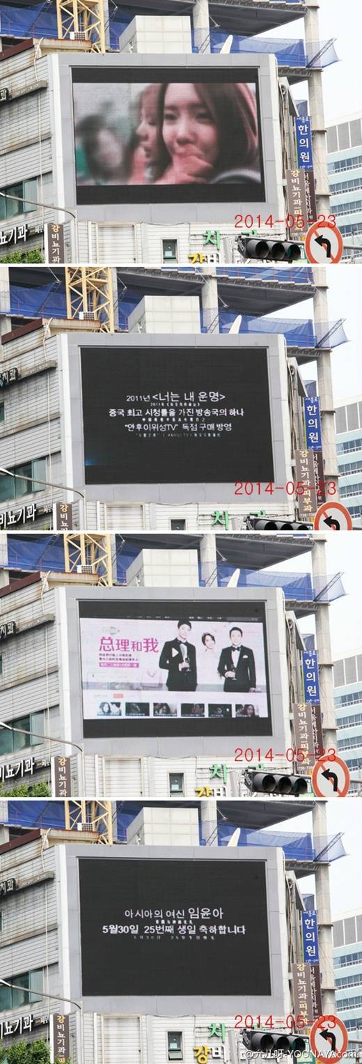또, 광화문 근처에는 중국 팬들의 생일 축하메시지를 담은 대형 LED 전광판 광고가 등장했다. 전광판의 동영상에는 윤아를 향한 중국 팬들의 뜨거운 감동과 사랑이 잘 드러났다.