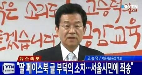 고희경 씨는 "아버지는 자신의 자녀 교육에 참여하기는커녕 연락조차 하지 않았다. 서울시교육감 후보로서 자질이 없다. 정확한 진실을 서울시민에게 알리기 위해 페이스북에 글을 올리게 됐다"며 고승덕 후보를 비난했다.