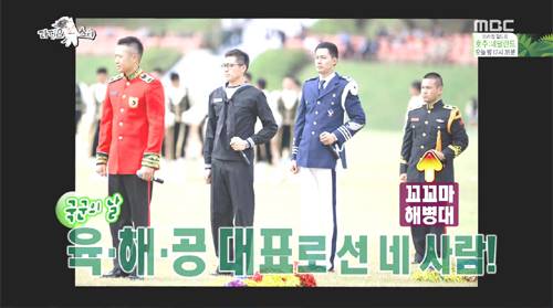 해당 사진은 2009년 국군의 날 행사에서 찍힌 것으로 육해공군 대표로 천정명 고장환 조인성 이정의 모습이 담겨 있다. 특히 이정은 세 사람에 비해 키가 작아 놀림을 받았다. 이에 이정은 "저 때는 깔창을 끼우지 않았다"라고 해명했다.