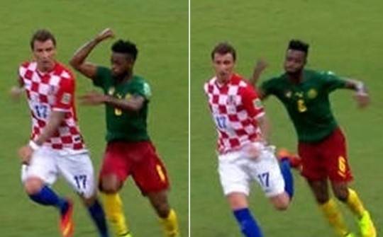 FC 바르셀로나에서 활동하는 카메룬 국가대표 미드필더 알렉스 송은 만주키치의 등을 향해 팔꿈치 공격을 날렸다. 공격을 마치고 자신의 진형으로 복귀하던 크로아티아 공격수는 난데없는 공격을 받아 상당히 고통스러운 시간을 보냈다.