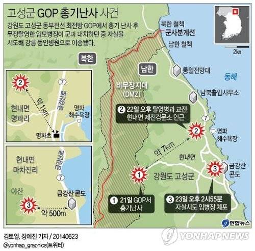이에 앞서 임 병장은 고성군 금강산콘도 500m 서쪽에서 군 병력과 대치 중이었다.