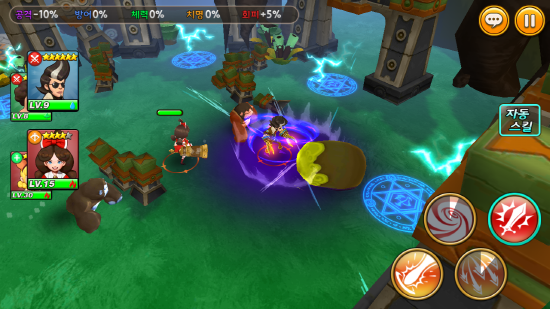 자동전투에 대한 질문도 있었다. 저레벨에서는 수동전투를 해야하지만, 고레벨이 되면 자동전투로 게임이 진행된다. 따라서 유저는 총 4개의 캐릭터로 최대 8개의 스킬을 누르는 것 외에 조작의 재미는 느낄 수 없다.