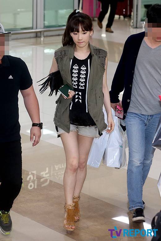 소녀시대 멤버들은 내추럴하면서도 수수한 공항패션으로 시선을 모았다. 태연은 취재진의 질문에 별다른 답을 하지 않은 채 공항을 빠져나갔다.
