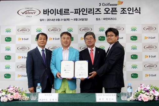 한국프로골프협회(KPGA)는 제화업체 안토니㈜, 파인리즈리조트와 '바이네르-파인리즈오픈' 조인식을 갖고 2016년까지 3년간 대회를 유치하기로 협약했다. 8월 21일부터 24일까지 강원도 고성 파인리즈골프장에서 열릴 이 대회에는 총상금 5억원, 우승상금 1억원이 걸려 있다. J골프를 통해 전 라운드 생중계될 예정이다. 안토니㈜는 바이네르 등의 브랜드를 보유한 제화업체로, 골프단을 비롯해 볼링단 등을 운영하고 있다. 안토니 김원길 회장은 최근 KPGA 투어에서 2개 대회 연속 우승을 차지한 김우현(23)의 부친이다.