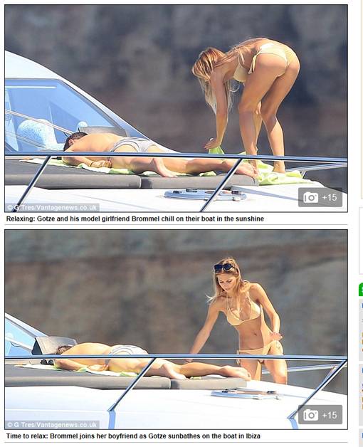 16일(현지시간) 데일리메일 보도에 따르면, 마리오 괴체는 브라질 월드컵 우승 후 더나 할 것 없는 행복한 시간을 보내고 있다.