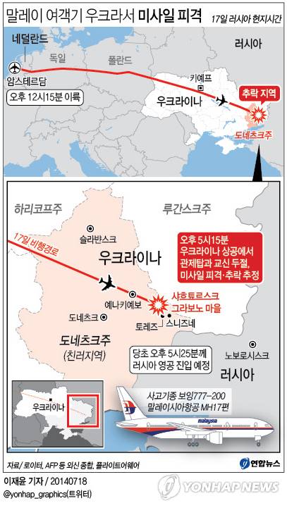 - <말레이기 피격> 각국 항공기, 사고지역 우회운항