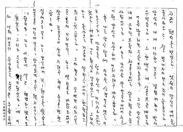 시인 이상이 25세 때 소설가 최정희에게 보낸 연서의 일부. 편지에는 사랑을 보답 받지 못한 남자의 슬픔이 절절히 녹아 있다. 권영민 교수 제공