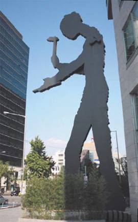 서울 종로구 새문안로에 위치한 '망치질하는 사람'이라는 조형물은 1분 17초마다 한 번씩 망치질을 하는데, 이는 현대인의 노동에 대한 신성함과 존엄성을 망치질하는 일로 표현해 형상화한 작품으로, 키네틱 아트의 범주에 속한다.