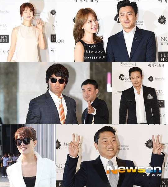 연예계에서는 배우 박소현, 김선아와 '런닝맨'을 통해 친해진 유재석, 이광수, 김종국과 김창렬이 참석했다. 김민지 전 아나운서 동료인 SBS 박주우 아나운서, 장예원 아나운서 역시 두 사람을 축복했다.