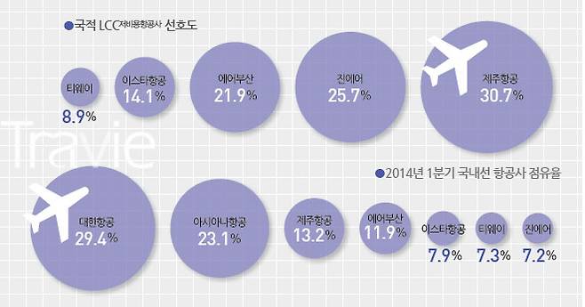 Do you Know?2014년 1분기에 국내 항공사 점유율은 대한항공→아시아나항공→제주항공→에어부산→이스타항공→티웨이항공→진에어 순이다.