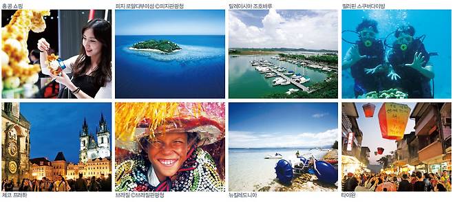 Theme 국가별 선호하는 여행테마홍콩에선 쇼핑과 휴식피지 하면 달콤한 허니문말레이시아에서는 휴양이 보약이고필리핀은 해양스포츠가 최고네팔에서는 트레킹이 기본이지.체코는 그야말로 관광모드브라질은 축제의 나라가 아닌가.