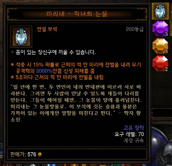 [케빈] 한국형 보석의 경우 블리자드 한국지사의 도움으로 한국의 구전설화 등에서 영감을 받았다. 이번에 선보일 예정인 '미리내'의 경우 견우와 직녀의 스토리 중 직녀의 눈물을 결정화한 보석으로 하고 있다. 또한 추후 대규모 패치를 통해 한국형 아이템을 추가할 계획도 있다.