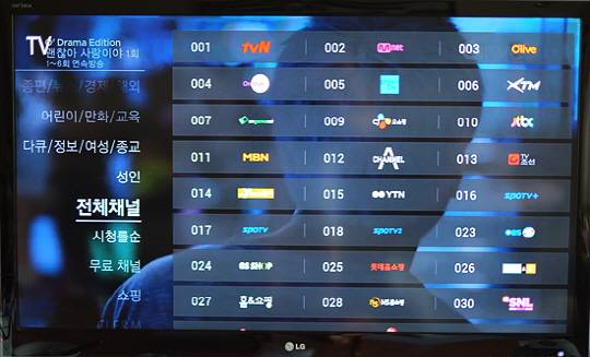 화면 하단 가운데 있는 TV를 눌러봤다. 1번부터 9번까지가 tvN Mnet Olive Onstyle 등 모두 CJ E & M 채널로 편성돼 있다. 그 뒤를 이어 JTBC, MBN, 채널A, TV조선 등 종합편성채널과 뉴스Y, YTN 등 보도전문채널이 따르는 편성이다. 이는 지상파·케이블·IPTV·위성 방송이 여전히 KBS·MBC·SBS 등 지상파방송 중심으로 편성을 탈피한 방식이다. 그야말로 CJ E & M 콘텐츠가 중심이 된 최초의 플랫폼이 된 셈이다. OTT에서 채널 개념이 사라진다고는 하지만, CJ E & M 콘텐츠가 앞번호에 배치된 만큼 상대적으로 노출 빈도가 많아질 수밖에 없다. 사실 이같은 편성은 의도적이라기보다는 지상파 콘텐츠를 수급하지 못한 탓이 크긴 하다.