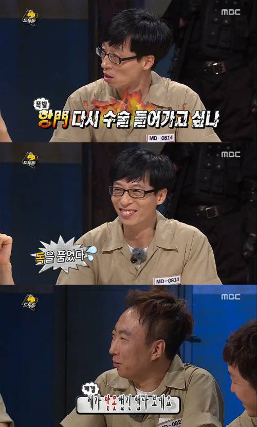 평소 온화한 성품의 유재석은 하하에게 "닥쳐"라고 강한 한 마디를 남겨 모두를 떨게 했다. 이어 노홍철이 "이제 한 번 더 실수하면 빵 터지는 거 아니냐"고 깐족거렸고, 이에 분노한 유재석은 "항문 다시 수술들어가고 싶냐"고 반발했다.