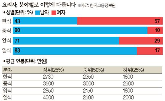 "마레 하나, 알페스토 하나, 봉골레 둘. 이상." 주방장 말에 키친 안에 있는 요리사들 움직임이 빨라진다. 누구는 야채를 자르고, 누구는 스타게티 면을 볶기 시작한다. 하지만 완성된 요리를 한번 맛본 주방장은 "다시"를 외친다. 요리사들 얼굴이 일그러질 수밖에. 2010년 방영한 드라마 '파스타' 한 장면이다. 식생활 수준이 높아진데다 때마침 요리하는 모습을 실감나게 표현한 이 드라마의 인기 등으로 요리사에 관한 대중의 관심이 커졌다. 에드워드 권, 강레오, 레이먼 킴 같은 유명 셰프는 연예인 못지않은 인기를 누리기 시작했다. 그래서일까. 요리사를 지망하는 청소년이 늘고 있다. 한국직업능력개발원이 2012년 중학생 3166명을 대상으로 희망 직업을 조사한 결과 교사(429명)와 의사(210명)에 이어 요리사(188명)가 선호직업 3위였다. 요리사가 무슨 일을 하고, 또 좋은 요리사가 되려면 어떤 능력이 필요한지 알아봤다.