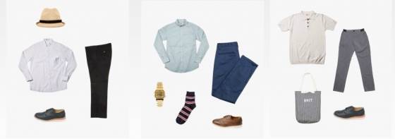 (왼쪽부터)흰색 셔츠, 하늘색 셔츠, 칼라 티셔츠를 활용한 소개팅 남성 패션의 좋은 예 /사진=맵시 |