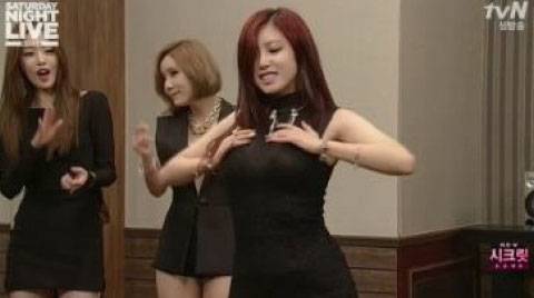 'SNL코리아' 시크릿 전효성이 안영미의 가슴 춤을 선보이자 온라인을 강타했다.