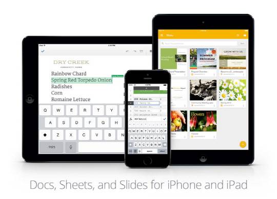 구글은 MS 오피스, 애플의 페이지, 키노트 등에 대응하기 위해 자사 '구글 독스', '구글 스프레드시트' 등을 안드로이드용과 iOS용으로 출시한 바 있다.