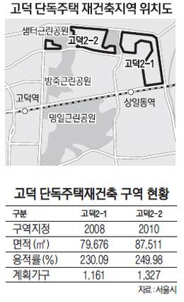 서울 시내 단독주택 재건축 추진지역 중 알짜로 꼽히던 강동구 고덕동 일대 고덕2-1, 2-2구역이 사실상 무산됐다. 특히 이 구역은 초기부터 서울시가 투명한 사업추진을 위해 공공관리제를 의무 적용한 곳이어서 제도의 실효성 여부가 다시 한번 도마 위에 올랐다.